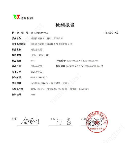 博流全系閥門定位器通過IP67防護等級測試